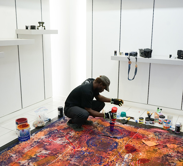 Artist Ibrahim Shuaib working in the 315 Studio
