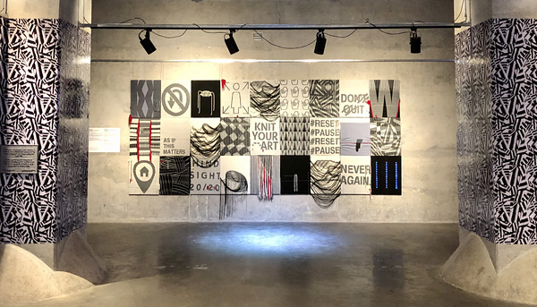 1. Rows of black and white knitted square patterns displayed on the wall of the Bank of Canada Vault at the Diefenbunker.