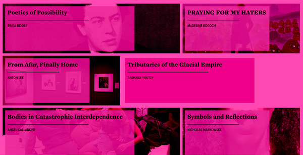 A flexible and responsive digital platform, PUBLIC Forum is an evolving hub of reviews, essays, interviews, and other experimental forms, operating amongst the other publishing initiatives of Public Access. Moving between formats and voices, archives and folklore, PUBLIC Forum prioritizes the exchange of ideas beyond academic discourses, making space for multiple ways to reflect on the currents of all that influences contemporary art, film, performance, and image-making.
