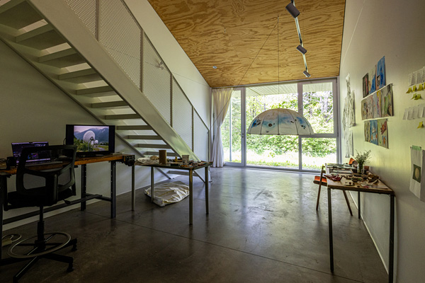 The eight-week residency periods, which bring together four artists and one author in the field of contemporary art, are offered in spring, summer, fall and winter. ENE occupies a building designed and built for the residencies of artists and authors. The architectural concept places exchanges, friendly relations, and technical and logistical assistance at the heart of the experience offered to residents.