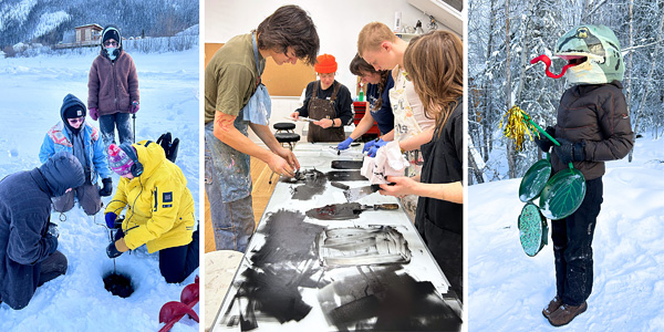 Artwork (far right): Jove Boutin, 2024-25 Foundation Year Student. Photos: Yukon School of Visual Arts.