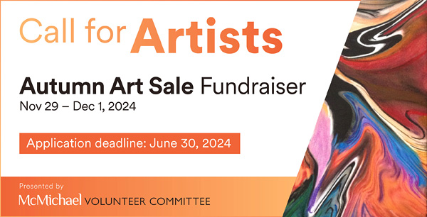 The McMichael Volunteer Committee’s Autumn Art Sale Fundraiser is open to all living Canadian and Indigenous fine artists and sculptors. All submitted artworks will be juried by a selection committee of professionals including gallery staff, curators, art educators, art collectors, artists and others with a strong background in art. Artists who have shown in previous years are welcome to re-apply. Applicants will be notified by email in mid- to late-August 2024. The McMichael Volunteer Committee reserves the right to use submitted photographed artwork for publicity (promotional postcards, ads and website) and reference purposes.