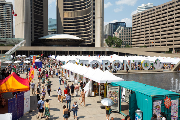Toronto Outdoor Art Fair (TOAF) is Canada’s leading outdoor and online art fair. Established in 1961 to connect Canadian artists directly to the public, TOAF showcases 400+ emerging and established visual artists, including painters, photographers, sculptors and artists working in ceramics, textiles, jewellery and more. The event brings together 170,000 art lovers and enthusiasts who spend over 2 million dollars on art during the Fair. This free public event takes place every July – rain or shine – at Nathan Phillips Square in the heart of downtown Toronto. Since 2020, TOAF’s online Fair has become Canada’s fastest-growing e-commerce and discovery platform for artists across Canada. The Toronto Outdoor Art Fair is a registered charitable nonprofit organization.