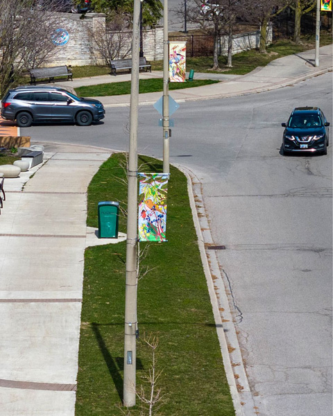 Banners will be installed in series on city light poles at various locations including but not limited to Kingston Road, Valley Farm Road, and Pickering Parkway. Light poles have single-armed hardware. Artists should be aware that the artwork may be subject to damage by the elements. Banners will be on display for approximately two (2) years. The Community Banner Series schedule, duration and location of the banner series installation is subject to change at the discretion of the City of Pickering.