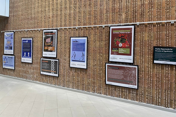 This placemaking opportunity will be located on the main floor of the Chestnut Hill Developments Recreation Complex (1867 Valley Farm Rd, Pickering, ON L1V 6K7) utilizing the display rack and preexisting frames located within the facility lobby.