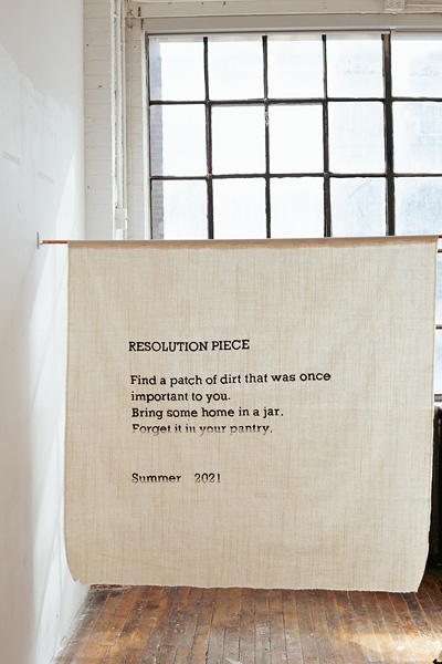 Lan “Florence” Yee, RESOLUTION PIECE, 2022, hand embroidery on linen and copper rods, each 5′ x 5′. Photo: Jordan Dawson. Courtesy of the artist. Yee received a Saunderson Prize in 2023.