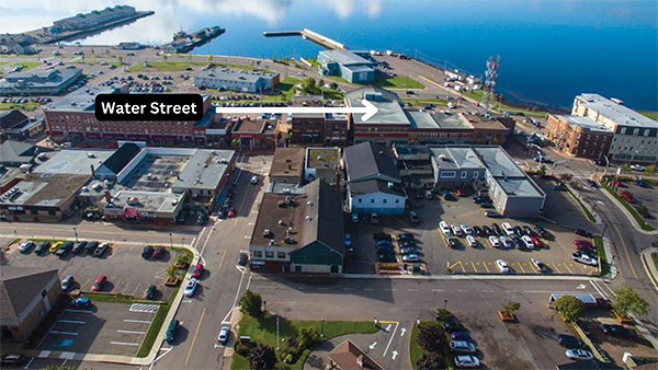 Aerial view of Downtown Summerside with Water Street highlighted, City of Summerside.