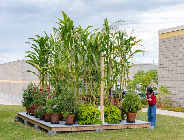 In 2024, Ron Benner and Jeff Thomas created Corn = Life: The Power of Naming, a living indigenous garden planted from seed. Throughout the summer and fall, visitors watched the garden grow, harvested produce, and participated in a communal experience. Photo: Camille Qinru Xie