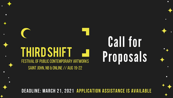 THIRD SHIFT is an annual festival of public contemporary artworks that takes place in Saint John, New Brunswick & Online. THIRD SHIFT 2021 will take place from August 19 – 22, 2021.