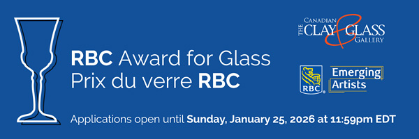The winner of the RBC Award for Glass will receive $10,000. One runner-up will receive a prize of $5,000. Up to 3 finalists will also be selected who will each receive a prize of $1,000. The winner, runner-up, and finalists will have their work featured in a group exhibition at the Canadian Clay and Glass Gallery in 2026. Prizes are inclusive of CARFAC exhibition fees. The Gallery also purchases an artwork by the winner and runner-up for the Permanent Collection each year.