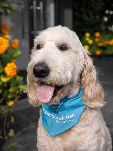 3. Dogtopia Foundation Canada – Dog wearing Dogtopia Foundation Canada Bandana at Dogtopia