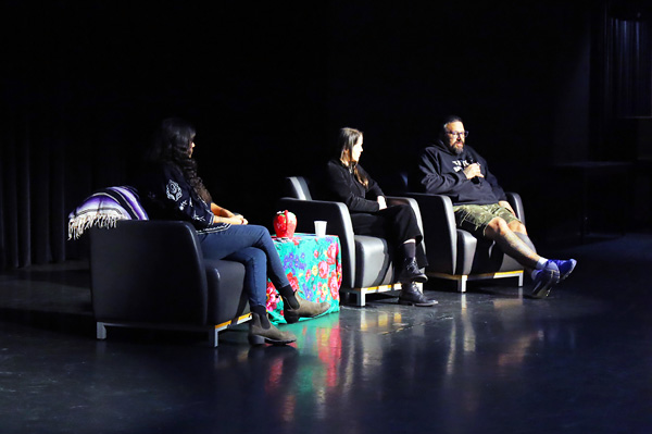 Indigenous Art Intensive director Tania Willard along with visiting artists Krista Belle Stewart and Dion Kaszas during a panel discussion, Indigenous Art Intensive, June 2023.