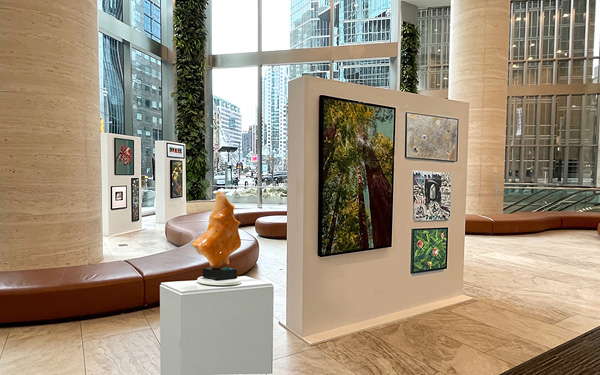 150 King is a beautiful, open space with the advantage of very high foot traffic in downtown Toronto during the peak of summer tourist season. It is located in the heart of Toronto’s Financial District, in the main lobby of 150 King Street West. The gallery sits at an entrance to PATH (the largest underground shopping district in the world) and the Toronto subway. There are dedicated security guards in the space. 150 King is fully accessible.