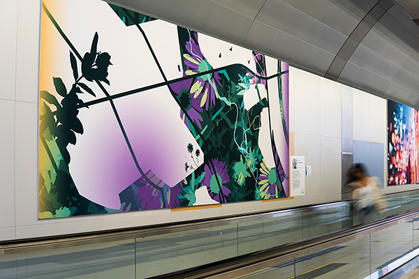 Perspectives brings the energy of the GTA art scene to the airport’s pedestrian tunnel, visited by millions every year. Each exhibition spotlights five local artists, with four of their works reproduced in striking large-scale format to turn the journey to the airport into a gallery experience.