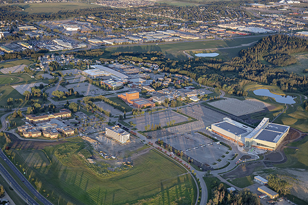 Aerial view of Red Deer Polytechnic campus. Credit: RDP Marketing and Communications, 2024.