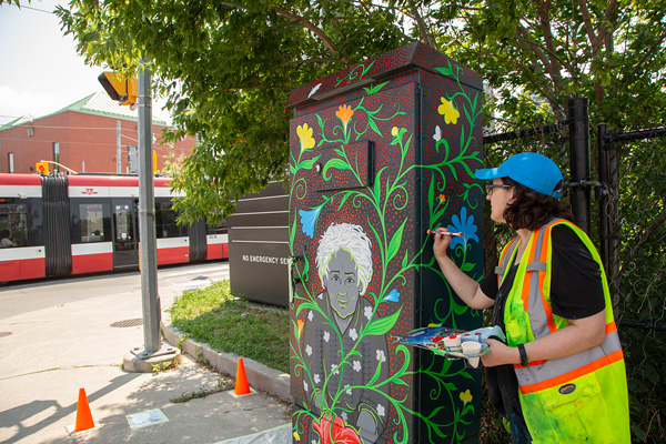 The Outside the Box program provides an opportunity for local artists to create works of art on traffic signal boxes across Toronto. Since 2013, over 600 boxes have been hand-painted or wrapped by local artists and transformed into extraordinary works of art. Artists applying to this program are encouraged to consider the context of the local area and the city as a whole.