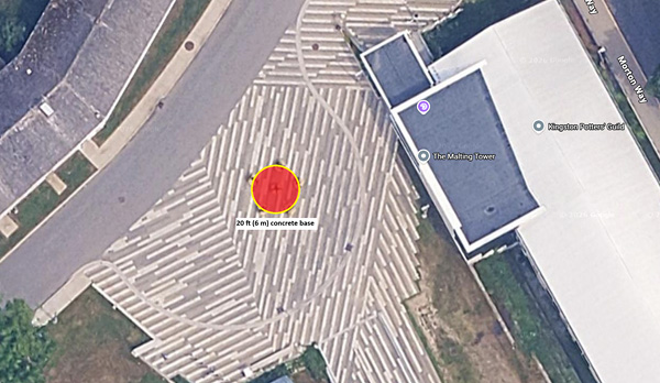 Aerial view of proposed artwork site, showing 20-ft diameter concrete roundabout to serve as the artwork’s base.