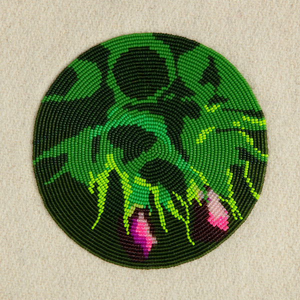 Carrie Allison, First Family, 2019-2020, Miyuki and toho beads on stroud, 13 1/8″ x 15 1/4″