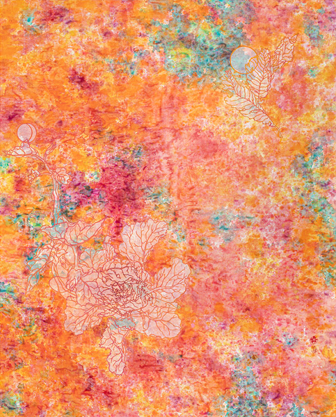 Cycle—Summer, 162 x 130.4 x 3 cm. Mineral pigments, and traditional Asian pigments on Hanji (Korean traditional paper)