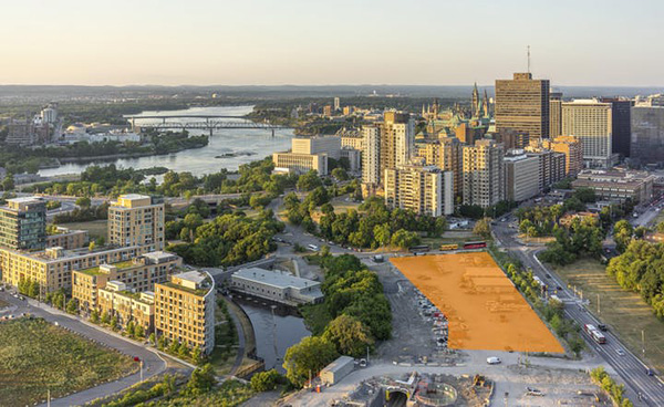 Aerial photo of the site of the new Ottawa Public Library and Library and Archives Canada joint facility.