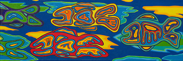 Dianne Brown-Green’s artistic journey has been profoundly influenced by her family, the environment, her Indigenous heritage, and cultural beliefs. Water has a consistent presence in her painting, appearing as literal shorelines or pools of colour that allow her subjects to float among one another. For Familial Waters, the artist presents a series of bold paintings in the Woodland style that reveal the entanglement of all these things, reflecting on memories of her family in nature – especially Algonquin Park and Manitoulin Island – and teachings passed down from her elders. Paired with a series of short videos in the artist’s studio that offer details about her influences and inspirations, Brown-Green’s exhibition in Stouffville captures our interdependent relationship with our surroundings, a theme that has sustained her career for almost twenty years.
