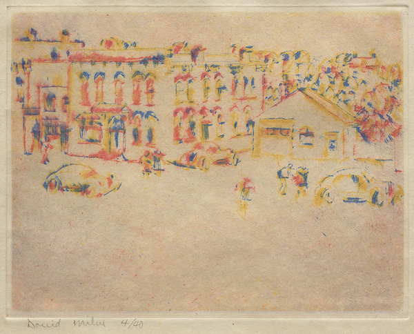 David B. Milne, Main Street, c. 1942. Ink on wove paper, edition 4/40. Tom Thomson Art Gallery Collection, Owen Sound. Bequest from the Douglas M. Duncan Collection, 1970.