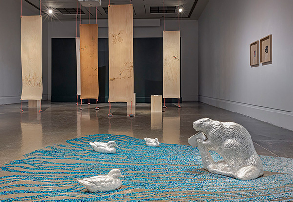 A member of Curve Lake First Nation and citizen of the Nishnaabeg Nation, artist Olivia Whetung draws upon her experience working on and with the land to create artworks that speak of the interdependence and relationality within our ecosystem. Researching land-based and food de-commodifying movements, Anishinaabe knowledge, and the ecology of her home territory, Whetung presents a series of sculptural installations, digital prints, and three-dimensional beadworks that articulate the vital connectivity between woodland, wetland, and garden environments.