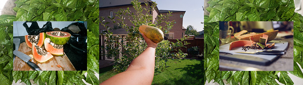 In this tryptic, there is an image of the papaya in my grandmother’s house (now owned by my aunt) captured in my first visit to Victoria Village, Guyana alongside the fruit freshly cut open in my kitchen in Bradford, Ontario, and another of it held in my hand with the backdrop of our suburb. The fruit shifts geographically, its shape and form adapt and differs with every transition, the taste is altered, and yet the experience and tradition it holds remains.