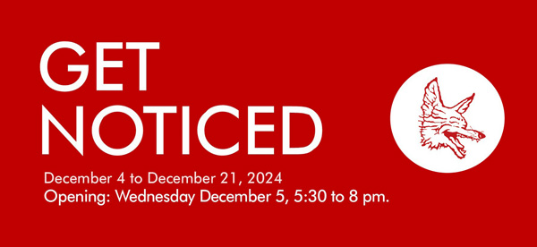 In addition to the exhibition in-gallery, there is an online edition of Get Noticed that features the work of Timothy Birchard, Chelsea Brant, Paige Bromby, Omar Chris Canales-Cisneros, Roberto Centazzo, Michael Julian Thomas Dawson, Bri Dyer, Matthew Shaun Ferguson, Jill Hobson, Helen Mak, Claire McNamara, Ana Norton, Ariel Schneider, Erin Shadoff, Sheida Shekarian, Heejung Shin, Xiao Fan Wang and Betty Wood.