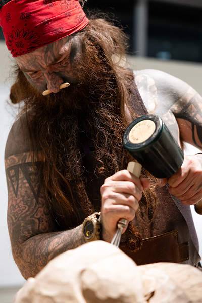 Join artist Gordon Sparks for a special presentation of the Mi’kmaq creation story. Sparks is a Mi’kmaw artist committed to mentorship and cultural preservation. Raised in Papineau First Nation, he now lives in Rought Waters, New Brunswick, where he practices traditional Mi’kmaq wooden mask carving and tattooing. He learned his craft from master carver Edward Ned Bear (1954-2019), who in turn learned from an Elder in his community. Central to Spark’s vision path is the preservation and transmission of traditional Mi’kmaq knowledge and wisdom, including stories, ceremonies, food, and medicine. As he explains, “Traditional wooden mask carving is the medicine that connects our oral stories to our visual language as Mi’kmaq people from the east coast of Turtle Island known now as Canada. Mask medicine has the ability to bring people to gather in a safe place to share our oral history through stories, ceremonies, drums and dance. The knowledge of mask making has provided me with the ability to discover my roots through the art of sculpture.”
