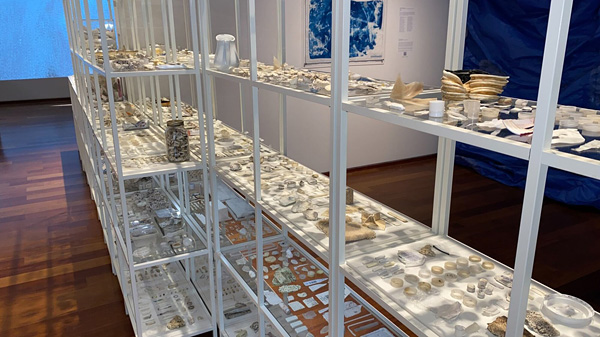 As such, plastic waste is foregrounded not only as ecological pollutant, but as cultural residue that documents the entanglements of systemic, governmental and industrial neglect and mass material consumption. Price shares, “Unfortunately, these shelves hold the archaeological finds of the future. It will be rare for future generations to come across and be able to reconstruct a beautiful piece of ceramic or glass.”