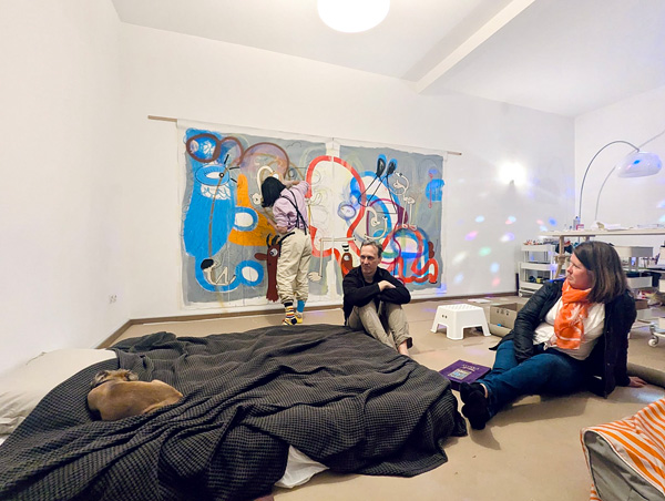 Fast forward a year, I’m in a new studio in Saverne France. I think I’ll be making more drawings for my show in Toronto but that never happens. I had friends come over to stay for a week, some of them slept in my studio, I have a new disco light, we are chatting, we wonder how ten years have passed since we first met and I make large paintings under the influence of disco light and memories.