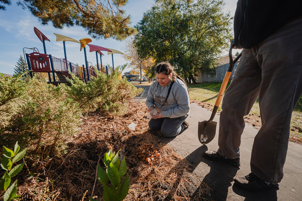 Duvall invited members of the public to recommend sites that held personal meaning. Working with members of STR8 UP—a Saskatoon organization that offers outreach services, programming, and support to those who have lived or are living criminal street lifestyles—and other collaborators, she marked each location by planting crocuses, the hardy perennials whose blossoms signal the arrival of spring.