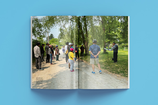 Lost and Found first unfolded as a series of constructed situations along the Rouge Valley Trail in Unionville throughout the summer and fall of 2023. Augmented by specially designed t-shirts and musical carts, it was brought to life through everyday activities embodied by local community groups and amateur musicians. The project then transitioned to the exhibition space at the Varley Art Gallery of Markham to formalize a visual language that frames individual experiences along the trail as “artworks” in the gallery through the presentation of objects and ephemera in an interactive installation.