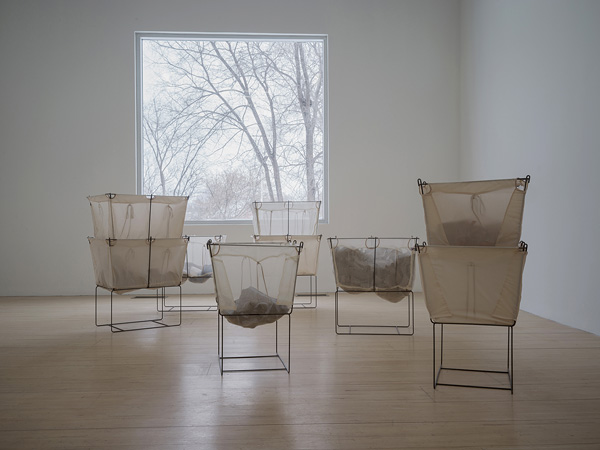 Notions of trauma, loss, personal histories and matters of identity and labour all collide in the sculptural work of Karen Kraven. Her work explores the vulnerability and potential of the body through exertion, work, and grief. Accessing her familial background in textiles, her work emerges from a collection of objects, associations and poetic meanderings. Her work also explores neurological impairment caused by brain disease or trauma, dementia or stroke. Kraven’s sculptures move us through a politics of pleasure and pain, strewn with illness, grief, and delusions of redemptive productivity.