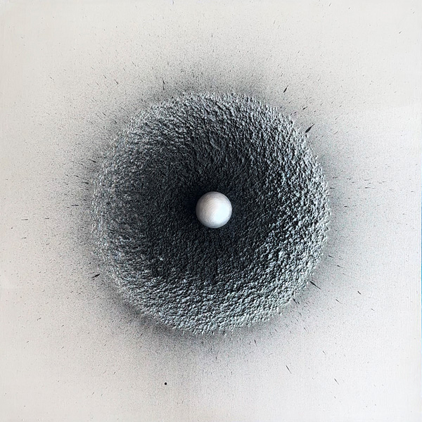 Metal Sphere – Pearl, mixed media on canvas, 30 x 30 inches