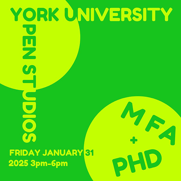 Please join York University’s Visual Art MFA and PhD students for Open Studios on January 31!
