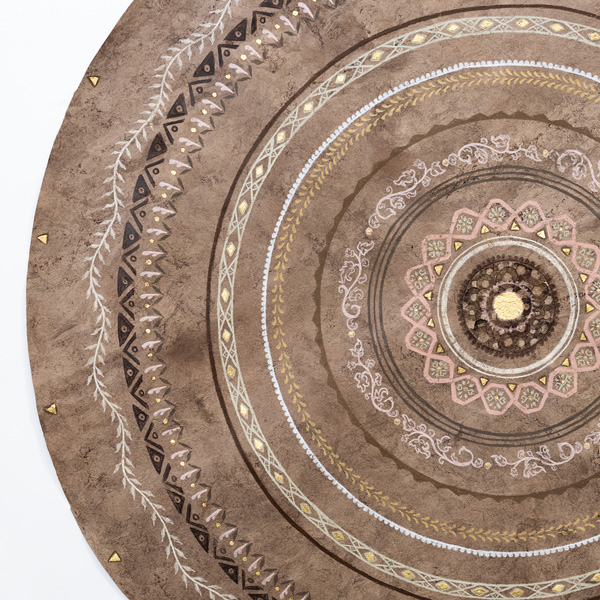 Michelle Peraza, Interstices (detail), coloured pencil, 23k gold leaf on amate/amatl paper, 2022. Photo by Lisa East. Image courtesy of artist.