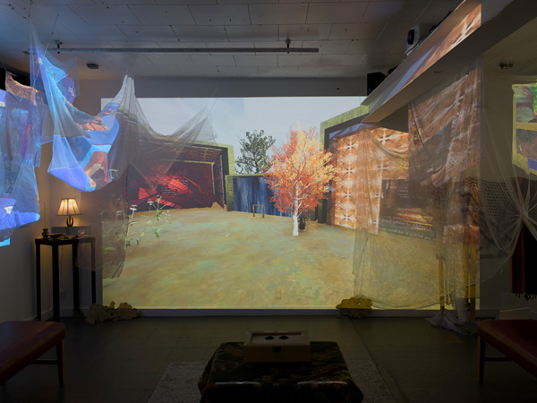 Since its opening in September, we’ve welcomed a steady stream of artists, community members, and students into this immersive work. From the engaging soundscape that fills the gallery to the quiet intimacy of voices heard through a telephone, +1-Home invites us to listen closely. By way of a first-person player video game, this installation by Nada El-Omari and Sonya Mwambu offers viewers a mosaic of calling cards through which to navigate, observe, remember, and reflect on what really brings people together. Viewers have responded with care and curiosity, spending time with the installation and engaging with the space. Small, meaningful objects are delicately placed throughout the space, inviting quiet reflection and discovery.
