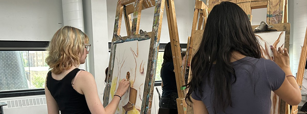 1) 2024 Summer workshop participants drawing on easels in OCAD U studio.