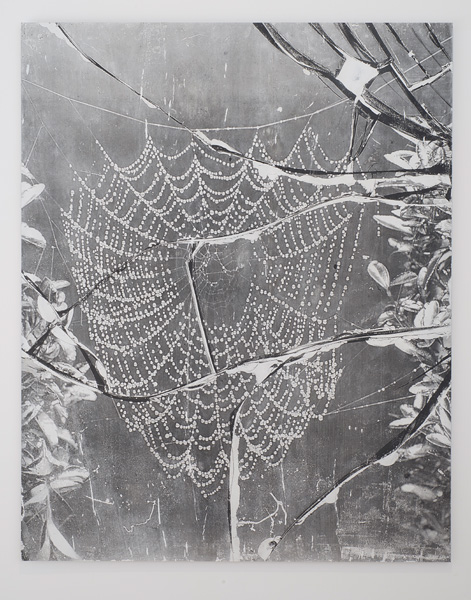 Harold Mendez, At night we walk in circles, 2016, cotton, graphite, spray enamel, watercolor, toner, litho crayon on ball grained aluminum lithographic plate mounted on Dibond, 60” x 84”. Installation view, 2017 Whitney Biennial. Photo: Whitney Museum of American Art, New York