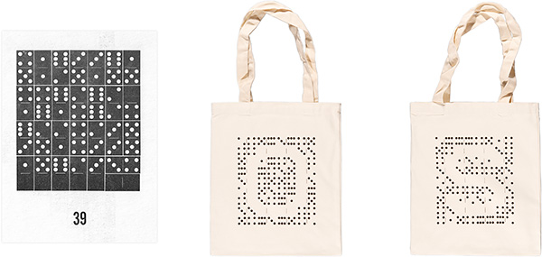 Celebrate Open Studio’s 55th with tote bags designed by Micah Lexier and Matthew Hoffman, featuring a dominoes-inspired design. Printed by Pudy Tong.