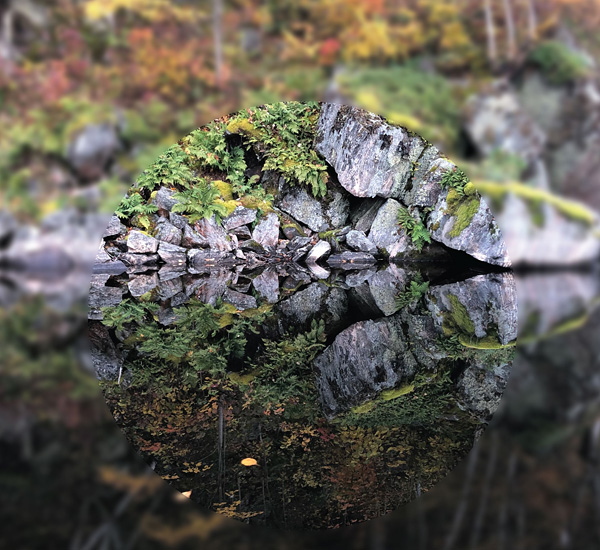 “I continue to be inspired by shorelines—the worlds between the land, water and sky, especially poignant from the vantage point of sitting in a canoe or kayak. There, moving while buoyed just below the water’s surface, you can quietly paddle close to the shoreline, sit motionless watching, or move slowly along while the water is like glass, reflecting the land into the water so that the already shifting shoreline border disappears—and faces, beings, openings are (at moment’s glance) revealed and then concealed. Forms and ideas emerge through the interplay of light, shadow and sound and between the substantive and the energetic, the captured and the fugitive, and scales of impermanence.”
