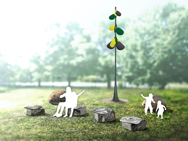 Digital rendering of public artwork entitled Signal Pine by artist Amy Thompson to be installed in Laroche Park / Rendu numérique d’une œuvre d’art public intitulée Signal Pine, de l’artiste Amy Thompson, qui sera installée au parc Laroche.