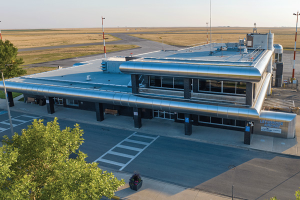 2. View of the Lethbridge airport Main Terminal with silver metallic façade.