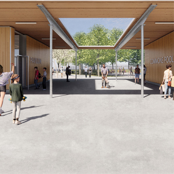 The Halifax Common Aquatics Facility project will include a 13,500 square foot pool with capacity for 450 people, a new playground, and a year-round pavilion with a community room, kitchenette, modular stage for performers, and natural shade areas from tree groves and overhand features of the structure. It is anticipated the new facility will be open to the public in summer 2023.