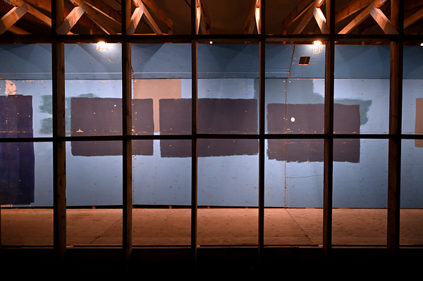 For its second and current iteration at the School of Art Gallery, Aquino has modified the hoarding wall and sidewalk so that the structure wraps around the contours of its intimately-scaled and uniquely-shaped Collections Gallery and has subtly altered the surface of the painted wall to emphasize its Rothko-esque compositional elements. Enveloping the viewer, the work is reminiscent of Rothko’s famous Chapel, encouraging a stillness within, and a contemplation of, a space usually experienced as an unremarkable passage.
