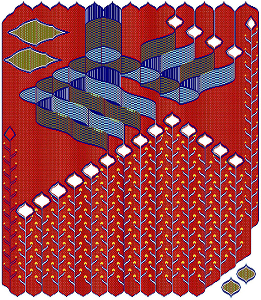 This exhibition includes Zazai’s digital prints, Jacquard tapestries, handwoven carpets and videos, all translated from images painstakingly created in Microsoft Word. Through these varied media, Zazai traces the technological progression from traditional Afghan handweaving to the development of the Jacquard loom, which informed the design of early computers.