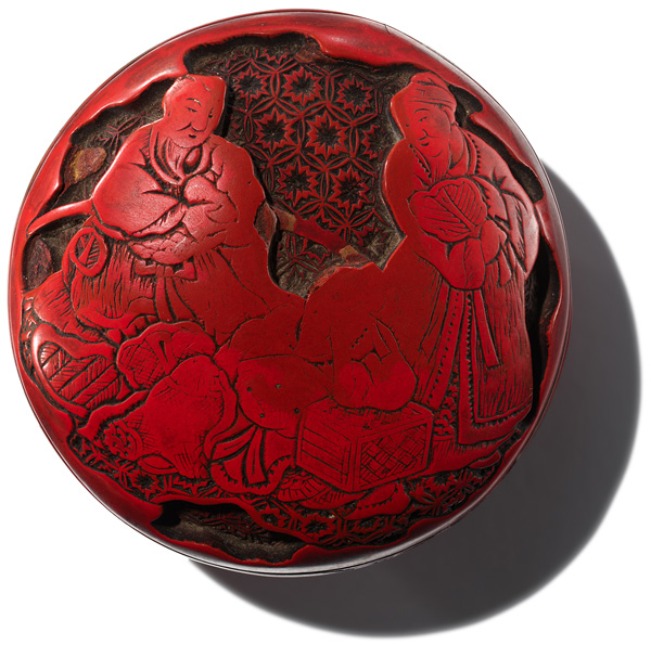Manjū netsuke, Edo period, 19th century, carved red lacquer, diam. 4.3 cm; depth 2cm.