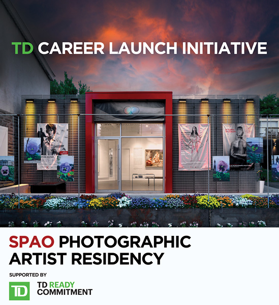 The SPAO: Photographic Arts Centre and supporting sponsor TD Bank Group are pleased to announce the TD Career Launch Initiative. This initiative will provide 5 emerging photo-based artists from anywhere in Canada, 6 months of mentoring support as well as the environment and facilities required in order to significantly impact their artistic career development. The standard fee to participate in this residency ($5500) for each artist selected will be supported by the TD Bank Group, ensuring youth or traditionally marginalized individuals are prioritized.